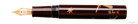 This pen is furnished with an 18k Gold, two-toned #6 nib. What has been described by many Danitrio collectors as the fireball nib is an image of “Kaen-Kohai” which is a flame-shaped halo of “Fudo Myoo” (Acala, the God of Fire). This halo is commonly painted on the back of Japanese Buddhist statues.