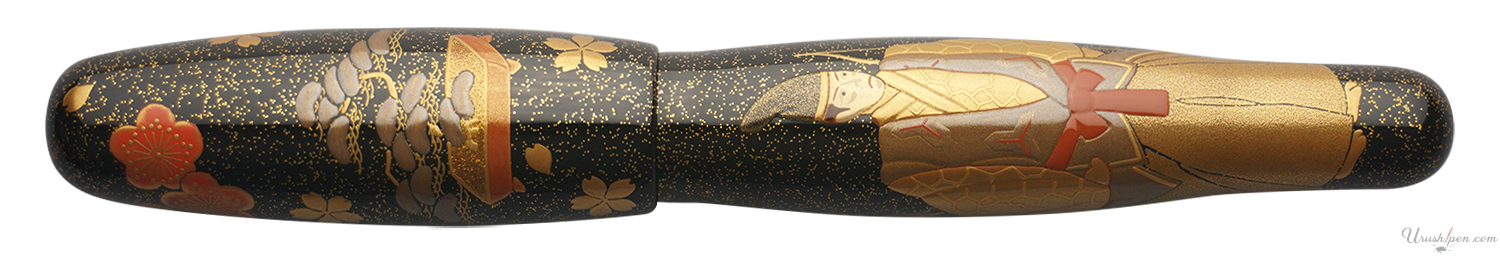 This pen was hand-painted by Hakusan Taniguchi (Masamune). Born in 1959. Inspired by his father who painted urushi himself, he aspired to one day be a maki-e artisan. He is recognized by the Japanese Government as a Dento Kogei-shi, which an honorary title meaning "master of traditional crafts" and is given only to a select few artisans who have a significant contribution to their craft. Many of his Maki-E works have been accepted and rewarded at national art exhibitions. He was an apprentice of Masanori Omote (another Danitrio artisan). In addition to pens, he applies a lot of his maki-e techniques to tea ceremony items.
