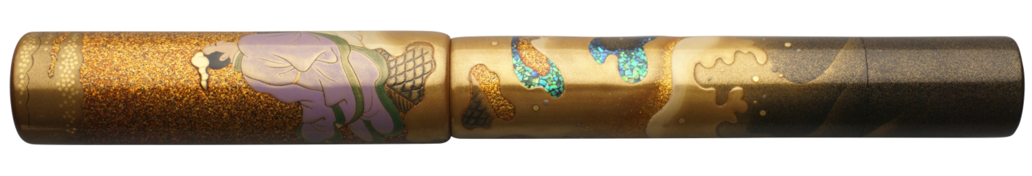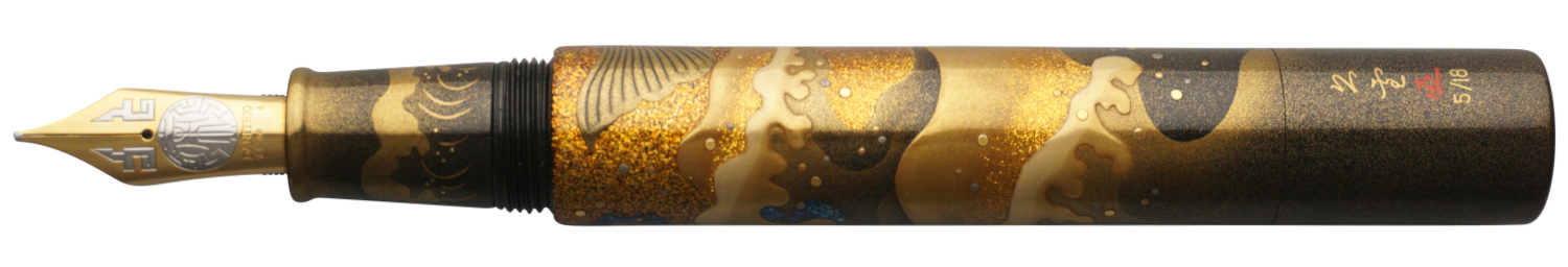 This pen was hand-painted by Tatsuya Todo (Kosetsu). He is an established maki-e artist who carries a strong name in the urushi fountain pen world. He was trained under the notable Masanori Omote (another artisan that works with Danitrio). He has had his pieces exhibited in numerous urushi exhibitions and holds the Dento Kogei-shi title, which an honorary title meaning "master of traditional crafts" and is given only to a select few artisans who have a significant contribution to their craft.