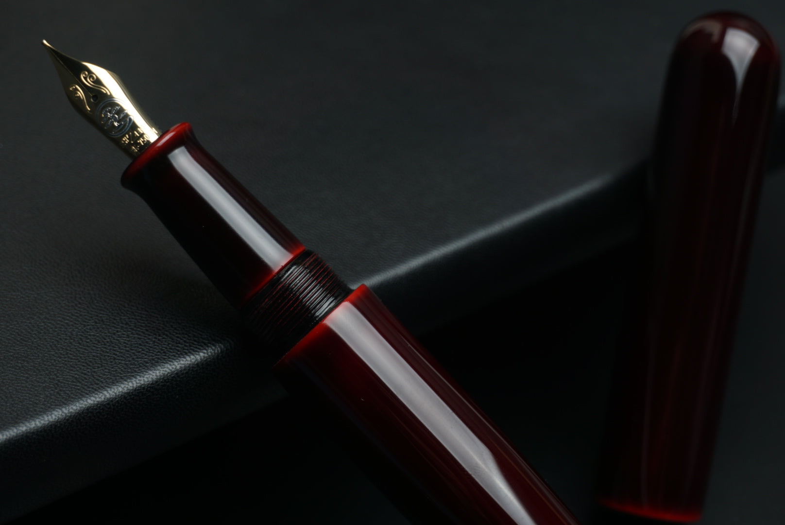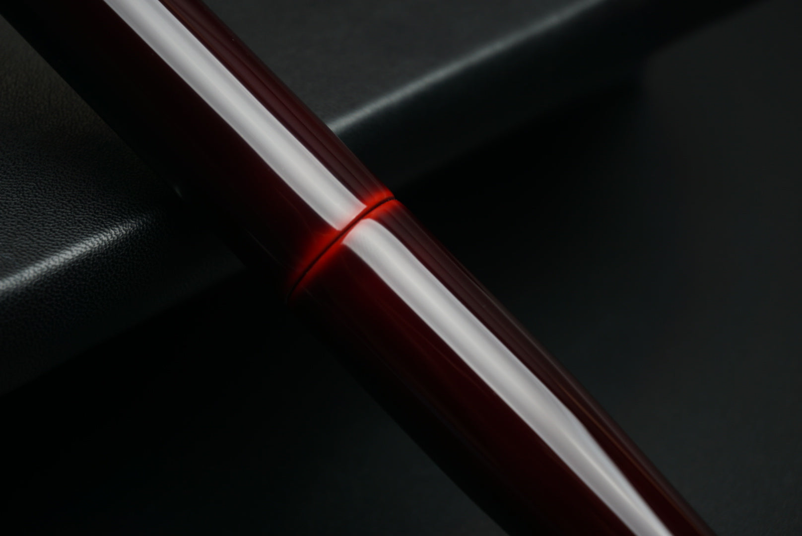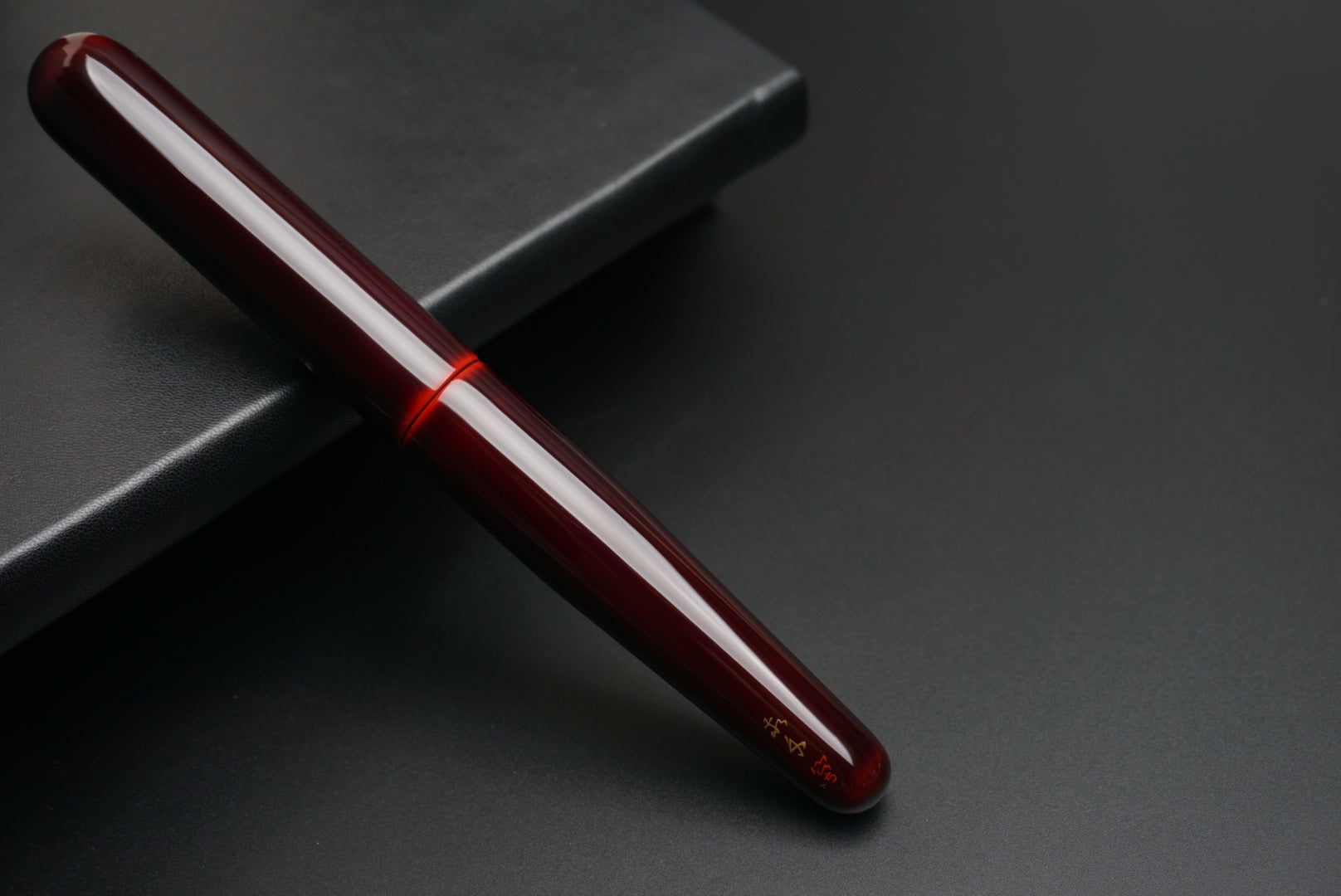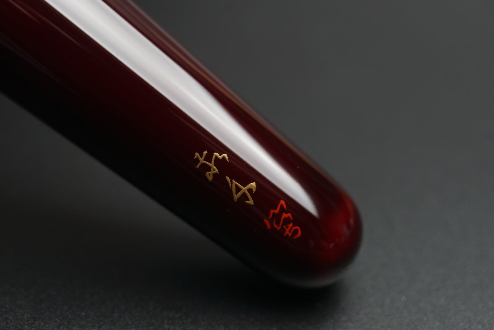 Keisuke-san's tame-nuri finish exemplifies extreme depth and profoundness. The edges are highlighted with bright undertone colors and exude a vibrancy unmatched. The immense layer build-up produces a tactile feel of the pen that is substantive and warm to the touch. Aka (meaning red in Japanese) is described here to be Ketto (bloodline).