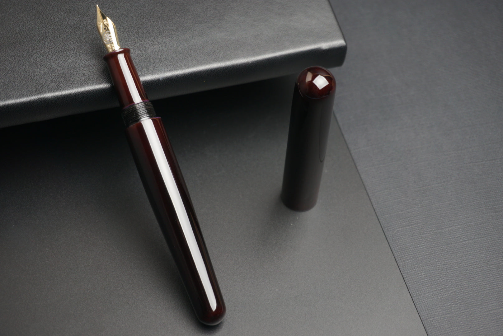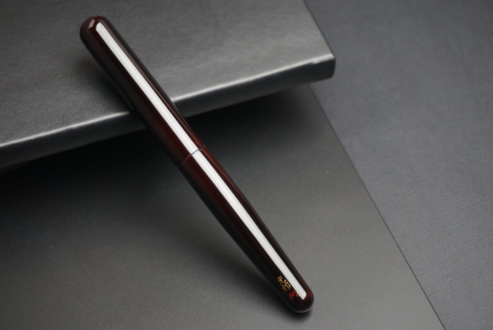 This pen was produced in partnership with Ranga Pens. Urushi lacquer is applied over a solidly constructed handmade Ranga model 5 ebonite pen body, including the threads.
